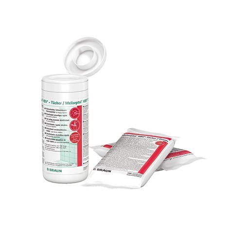 MELISEPTOL HBV PUSZKA 100 sztuk - Chusteczki do szybkiej dezynfekcji małych powierzchni odpornych na działanie alkoholi - Meliseptol HBV Tissues to gotowe do użycia chusteczki przeznaczone do czyszczenia i dezynfekcji małych powierzchni urządzeń, wyposażenia i nieinwazyjnego sprzętu medycznego: foteli zabiegowych, łożek szpitalnych, wyposażenia sal oraz innych rodzajów powierzchni wyrobów medycznych