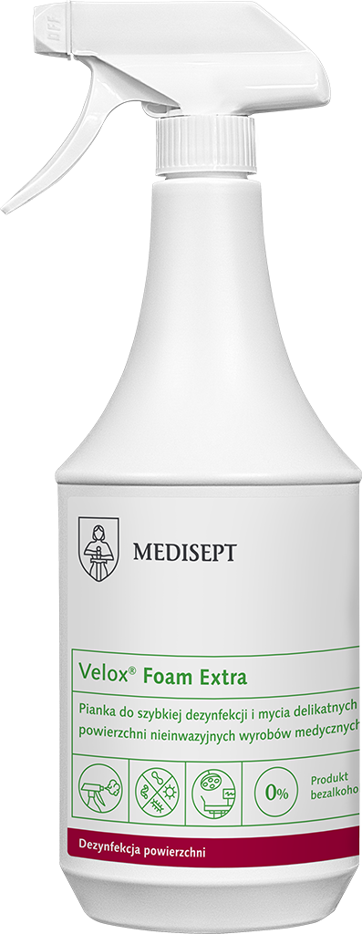 Zastosowanie: Velox® Foam Extra to pianka zalecana do dezynfekcji różnorodnych powierzchni nieinwazyjnych wyrobów medycznych ze szkła,