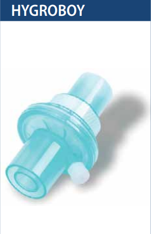HYGROBOY Przeznaczony do stosowania w rutynowych interwencjach anestezjologicznych, HYGROBOY jest obecnie filtrem HME z wyboru we wszystkich zastosowaniach, dla dzieci i noworodków dzięki swym kompaktowym rozmiarom bez ograniczenia skuteczności filtracyjnej i wydajności nawilżania. Filtr HYGROBOY został przebadany pod kątem skuteczności przeciwko wirusom Hepatitis C47, HIV-148 i Mycobacterium tuberculosis