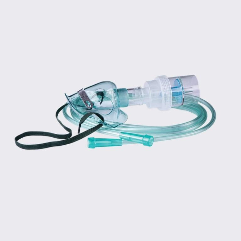 Maska tlenowa z nebulizatorem i drenem służy do podawania leków w formie aerozolu.