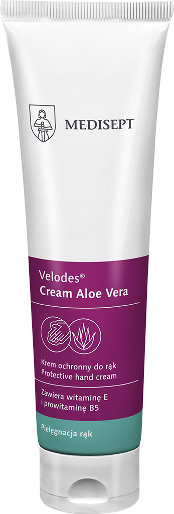 Velodes® Cream to delikatny krem do pielęgnacji skóry rąk i ciała. Działa ochronnie, nawilżająco i regenerująca. Pielęgnuje przesuszoną,