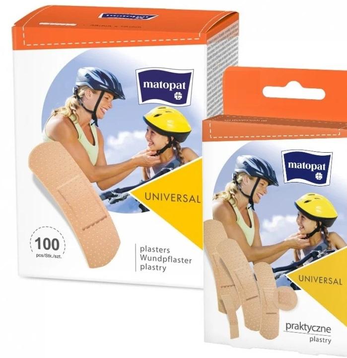 Plastry uniwersalne Matopat UNIVERSAL stosowane do opatrywania drobnych otarć i skaleczeń u dzieci i osób dorosłych. Doskonale sprawdzą się w każdej domowej apteczce. Dzięki zastosowaniu oddychającego materiału w kolorze cielistym pozostają niewidoczne na skórze i nie rzucają się w oczy.