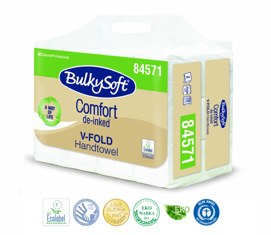 BULKYSOFT COMFORT EKOLOGICZNY DE-INKED Ręcznik w składce classic V-FOLD / ZZ wymiar listka 24x21 cm.