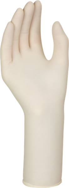 Rękawice chirurgiczne, lateksowe, pudrowane w kolorze jasnokremowym, teksturowane w celu poprawienia chwytności.