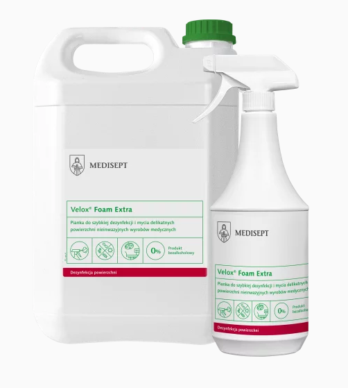Zastosowanie: Velox® Foam Extra to pianka zalecana do dezynfekcji różnorodnych powierzchni nieinwazyjnych wyrobów medycznych ze szkła,