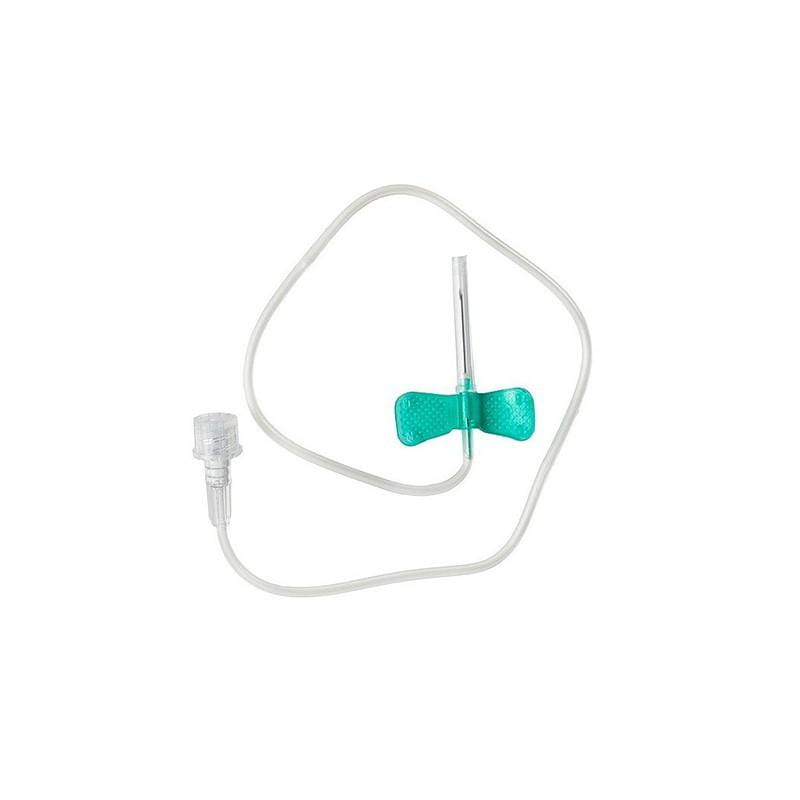 Igła motylkowa jest wyposażona w dwa skrzydełka i 30 cm dren dla zwiększenia komfortu podawania.