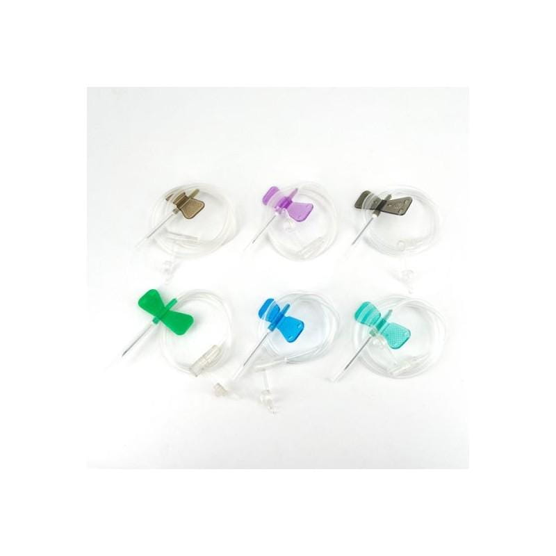 Motylki posiada zatyczkę typu Luer-Lock oraz elastyczne skrzydełka do precyzyjnego umieszczenia igły w żyle.